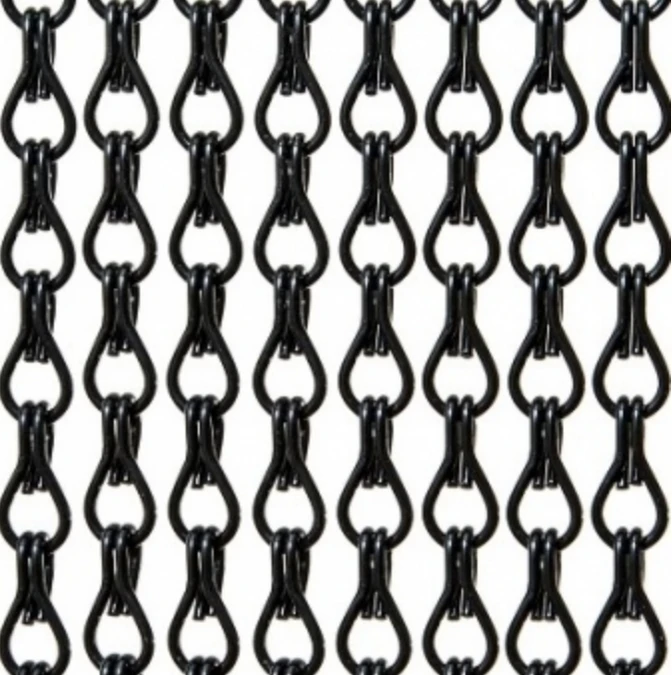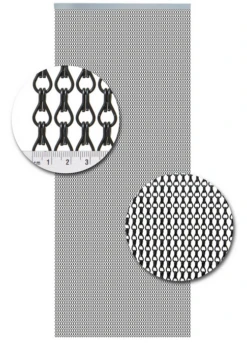 Dit zijn kwalitatief gezien echt goede vliegengordijnen. Ze zijn supersterk! De schakels zijn gemaakt van geanodiseerde draad en zijn kleur-echt. In één meter (breed) zitten 78 banen normale schakels. De groote van deze schakel is 24 mm lang en 12 mm breed. Het geheel hangt aan een zilverkleurige rail.