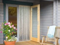 Dit bamboe vliegengordijn is eenvoudig boven je deurpost te bevestigen. Het enige wat je moet doen is twee schroeven in of boven het deurkozijn boren. Het aluminium profiel bevat twee haakjes waarmee je het vliegengordijn dus zo aan de schroefjes kunt ophangen.