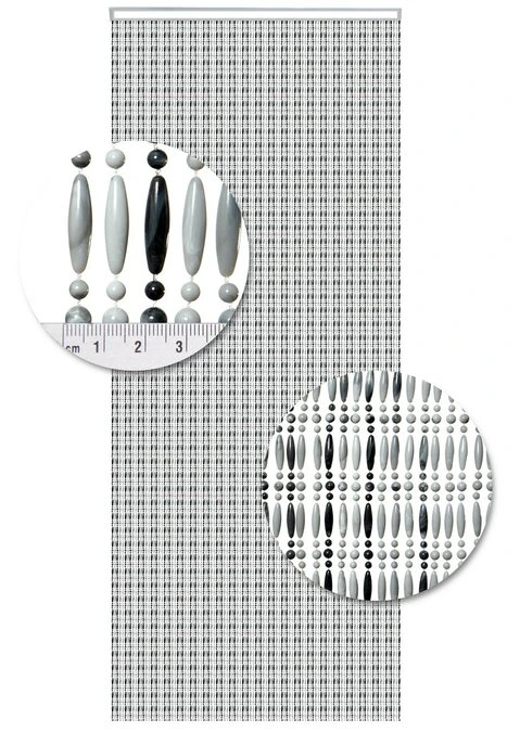 Dit zijn kwalitatief gezien echt goede kralengordijnen. De draadjes die gebruikt zijn, zijn gemaakt van nylon en dus extra sterk. De kunststof kralen zijn stuk voor stuk aan het nylon draad gesmolten. Het geheel hangt aan een witte cassette. Het is een vrij dicht kralengordijn waarbij er op circa elke centimeter een streng hangt. Om als voorbeeld even een vliegengordijn met een breedte van 90cm te noemen; hier hangen circa 90 strengen aan.