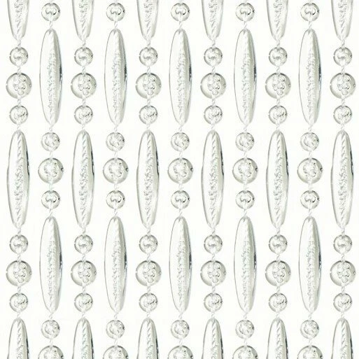 Luxe kralengordijn gemaakt van nylon draad. De kunststof kralen zijn stuk voor stuk aan het nylon draad gesmolten. Het geheel hangt aan een kunststof witte cassette.