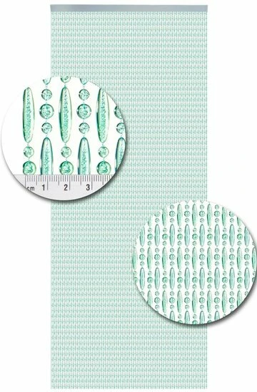 Luxe kralengordijn gemaakt van nylon draad. De kunststof kralen zijn stuk voor stuk aan het nylon draad gesmolten. Het geheel hangt aan een kunststof witte cassette.